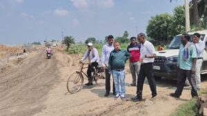 ग्रामीणों ने सर्विस पथ की मांग को लेकर रोका निर्माण कार्य,