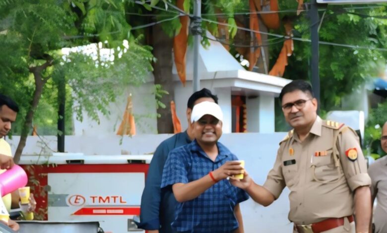 कौशांबी। थाना कौशांबी पुलिस द्वारा थाने के सामने मीठे शरबत का वितरण किया गया। इस दौरान दोपहर में और भयंकर तपती गर्मी से परेशान आने जाने वाले राहगीरों को शरबत पिलाया गया। थाना प्रभारी अजय कुमार शर्मा भी सेवा भाव से साथी पुलिसकर्मियों के साथ लगे रहे।