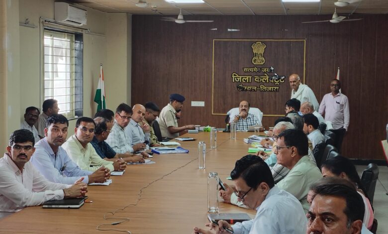 खैरथल-तिजारा। जिला कलक्टर किशोर कुमार की अध्यक्षता में जिला स्तरीय जनसुनवाई गुरूवार को जिला सचिवालय खैरथल-तिजारा के वीसी सभागार में आयोजित की गई। जिला स्तरीय जनसुनवाई में 67 प्रकरण प्राप्त हुए। जिला कलेक्टर ने मौके पर परिवादों को सुना तथा संबंधित अधिकारियों को समयबद्ध निस्तारण के निर्देश दिये।