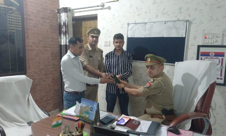 रामपुर शाहबाद। शिकायतकर्ता शाहबाद के करीमगंज गांव निवासी अमित कुमार यादव ने बीती तेरह अप्रैल को सामुदायिक स्वास्थ्य शाहबाद के पास मोबाइल गिर जाने के सम्बन्ध में थाना शाहबाद पर गुमशुदगी दर्ज करायी गयी थी।उक्त मोबाइल गुमशुदगी को संज्ञान में लेते हुए भारत सरकार द्वारा गुम हुए मोबाइल को तलाश करने के सम्बन्ध में प्रचलित सीईआईआर पोर्टल के माध्यम से गुमशुदा मोबाइल को बरामद किये जाने के क्रम में एसपी विद्यासागर मिश्रा व एएसपी अतुल कुमार श्रीवास्तव के कुशल नेतृत्व में उक्त मोबाइल गुमशुदगी के प्रकरण में साइबर सेल थाना शाहबाद द्वारा तकनीकी संसाधनों का प्रयोग करते हुए गुरुवार को शिकायतकर्ता अमित कुमार यादव का गुम हुआ मोबाइल बरामद कर शिकायतकर्ता को सुपुर्द कर दिया। मोबाइल बरामद करने वाली पुलिस टीम में कोतवाल पंकज पंत, उपनिरीक्षक अंशुल कुमार,कम्प्यूटर ऑपरेटर शैलेन्द्र कुमार शामिल रहे।