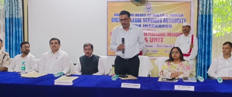कार्यशाला का उद्घाटन जिला विधिक सेवा प्राधिकरण के सचिव सह प्रधान जिला एवं सत्र न्यायाधीश रमेश कुमार, उपाध्यक्ष सह उपायुक्त अंजली यादव, परिवार न्यायालय के प्रधान जज अनिल कुमार पांडेय, डीएसपी जेपीएन चौधरी, सीजेएम शशिभूषण शर्मा , डालसा सचिव दीपक कुमार, रजिस्टार लीलेश सिंह मुंडा ने दीप प्रज्वलित कर किया।