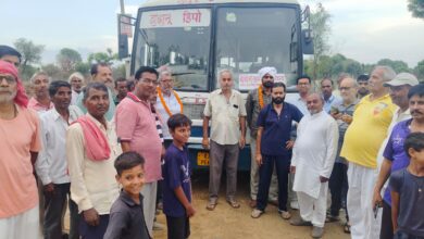 झुंझुनू से नीमकाथाना सीधी रोड़वेज बस सेवा शुरू होने पर किशोरपुरा में ग्रामीणों ने किया चालक और परिचालक का स्वागत