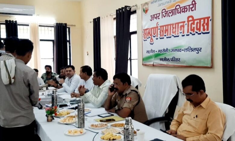 ललितपुर महरौनी : तहसील सभागार महरौनी में सम्पूर्ण समाधान दिवस का आयोजन अपर जिलाधिकारी अंकुर श्रीवास्तव एवम अपर पुलिस अधीक्षक कालू सिंह की अध्यक्षता में संपन्न हुआ।