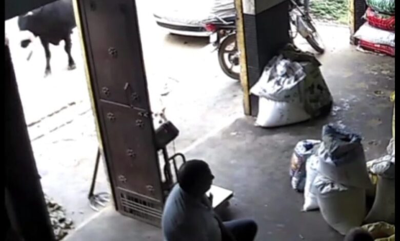 घटना सीसीटीवी में हुई कैद ; आवारा सांड से गांव में दहशत का माहौल