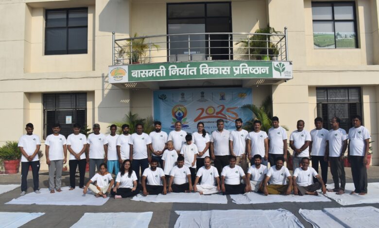 मेरठ। अंतरराष्ट्रीय योग दिवस के अवसर पर बासमती निर्यात विकास प्रतिष्ठान (एपीडा), मोदीपुरम द्वारा अपने प्रदर्शन एवं प्रशिक्षण फार्म पर योग दिवस का आयोजन किया गया। इस कार्यक्रम का संचालन संयुक्त निदेशक डॉ. रितेश शर्मा ने किया। उन्होंने अपने संबोधन में कहा कि स्वस्थ नागरिक ही किसी राष्ट्र की समृद्धि की नींव होते हैं, और योग इसके लिए एक सशक्त माध्यम है।