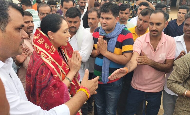 उपमुख्यमंत्री दीया कुमारी पहुंची रीगंस खंडेला विधायक सुभाष मील के नेतृत्व किया स्वागत।