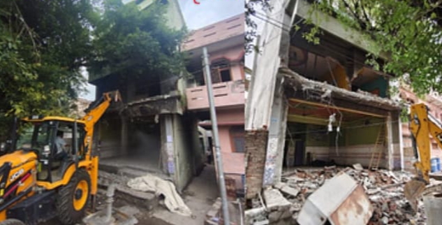 हिस्ट्रीशीटर ने अवैध तरीके से बनाए गए तीन मंजिला मकान पर चला बुलडोजर