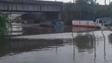 बारिश से शक्तिनगर-वाराणसी मार्ग पर रेलवे पुलिया के नीचे पानी भरा