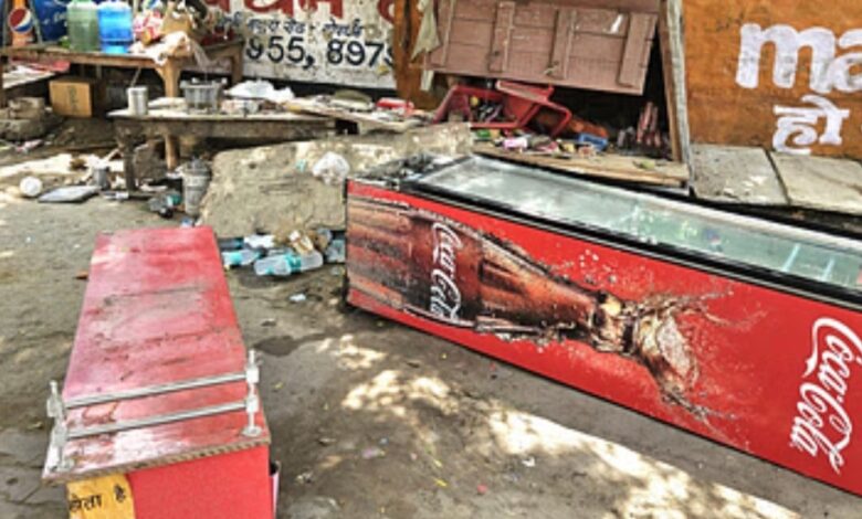 मथुरा। गोवर्धन में नगर पंचायत प्रशासन प्रशासन ने अतिक्रमण हटाने के नाम पर सख्ती दिखाई तो कर्मियों ने जमकर तांडव मचाया। अस्थायी दुकान को तोड़ते हुए उसका सामान सड़क पर फेंक दिया। दुकानदार ने कर्मचारियों पर रुपये मांगने का आरोप लगाया और नहीं देने पर सामान फेंक दिया। नगर पंचायत के अधिशाषी अधिकारी चैतन्य तिवारी के निर्देशन में कर्मचारियों ने पुलिस बल के साथ परिक्रमा मार्ग से अतिक्रमण हटाया। परिक्रमा मार्ग में बने पक्के निर्माण को जेसीबी से तोड़ा गया। वहीं सख्ती दिखाते हुए अस्थायी अतिक्रमण भी हटवाए गए। दुकानदारों ने सड़क पर तखत, कुर्सी तथा अन्य सामान रखकर मार्ग अवरुद्ध कर रखा था। ईओ ने सख्ती के साथ अतिक्रमण हटवाकर फुटपाथ पर लगे लकड़ी के खोखे हटाए। दुकानदार मुरारी लाल शर्मा का आरोप है कि पंचायत कर्मियों ने दुकान को तोड़कर फ्रिज बाहर सड़क पर फेंक दिया, इससे फ्रिज टूट गया।