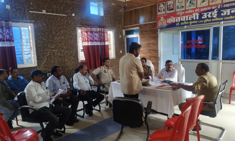 जालौन,उरई : शनिवार को उरई कोतवाली परिसर में अपर जिलाधिकारी नमामि गंगे प्रेमचंद मौर्य की अध्यक्षता में थाना संपूर्ण समाधान दिवस का आयोजन किया गया। इस अवसर पर एडीएम ने मौके पर पहुंचे फरियादियों की शिकायतों को गंभीरता से सुना और संबंधित अधिकारियों को तत्काल एवं निष्पक्ष निस्तारण के निर्देश दिए।