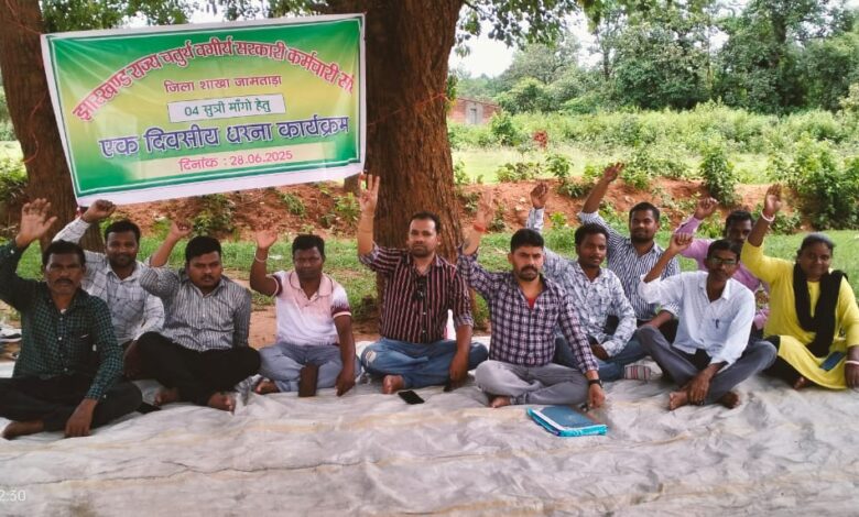 जामताड़ा में चतुर्थ वर्गीय कर्मचारियों का धरना प्रदर्शन