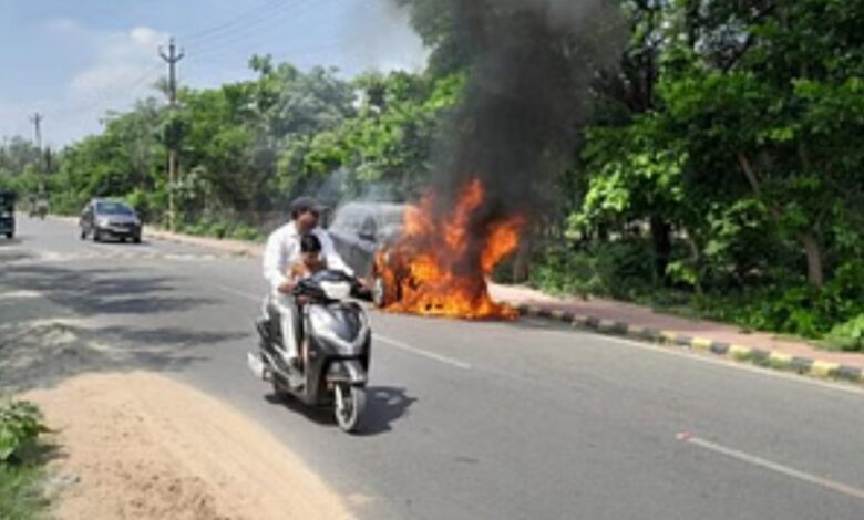 आर्मी पब्लिक स्कूल के पास चलती कार बनी आग का गोला