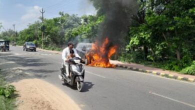 आर्मी पब्लिक स्कूल के पास चलती कार बनी आग का गोला