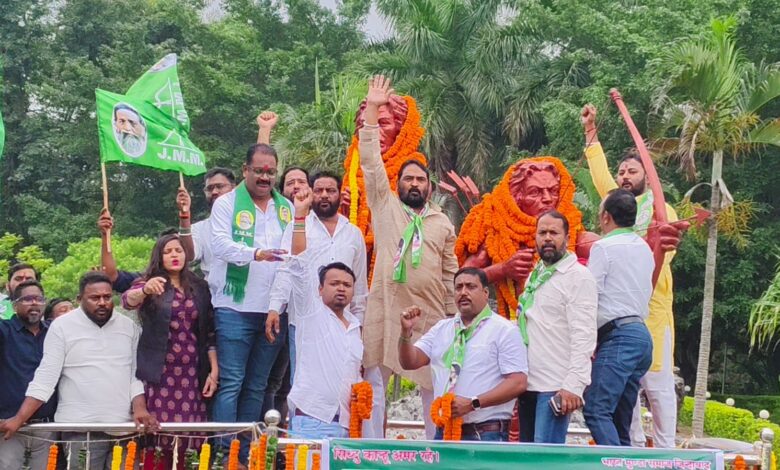 Vinod Kumar Pandey along with JMM Ranchi unit garlanded the statue of Veer Shaheed Sidhu-Kanhu