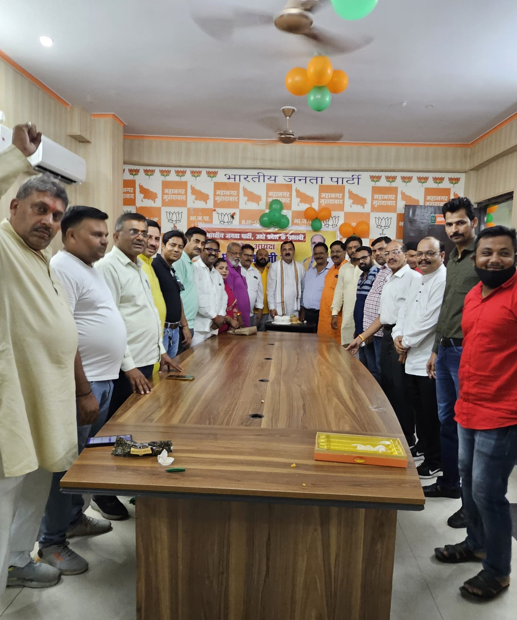 मुरादाबाद। आज भारतीय जनता पार्टी महानगर अध्यक्ष गिरीश भंडूला के नेतृत्व में सभी कार्यकर्ताओं के प्रेरणा स्रोत प्रदेश अध्यक्ष चौधरी भूपेंद्र सिंह के जन्मदिन के शुभ अवसर पर महानगर कार्यालय बुद्धि विहार पर उनका जन्मदिन बड़े ही धूमधाम से मनाया गया महानगर अध्यक्ष गिरीश भंडूला एवं कार्यकर्ताओं ने केक काटकर एवं मिठाई खिलाकर प्रदेश अध्यक्ष चौधरी भूपेंद्र सिंह को शुभकामनाएं एवं बधाई प्रेषित की एवं उनके उज्जवल भविष्य की कामना की