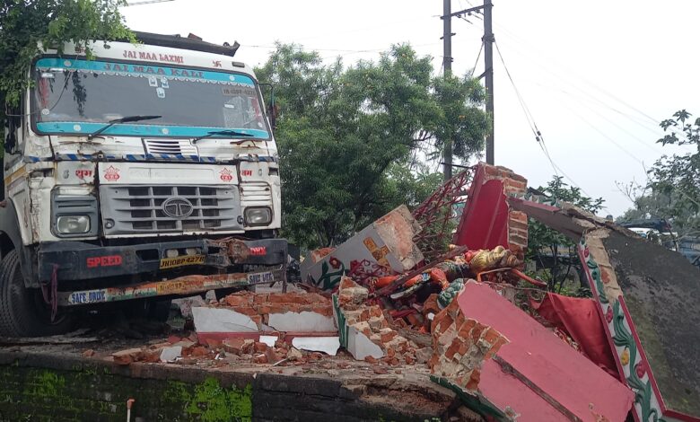 A truck collided with Hanuman temple near Muraidih check post in Baghmara