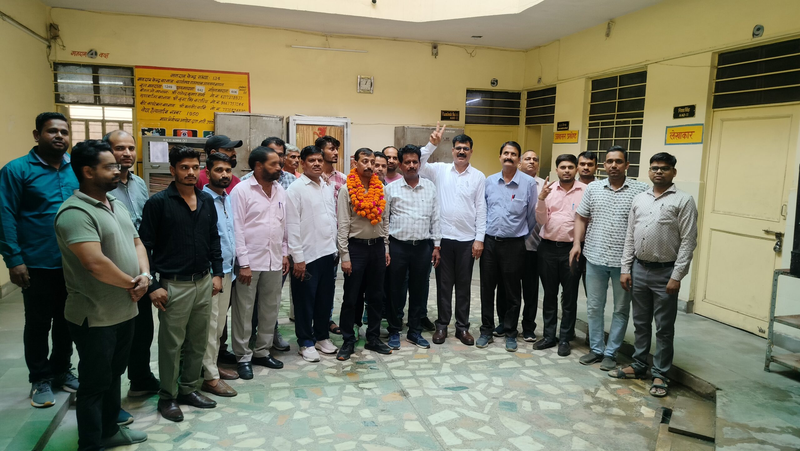 अलवर। राजस्थान आवासन बोर्ड कर्मचारी संघ शाखा अलवर के चुनाव केन्द्रीय पर्यवेक्षक अधिकारी सुभाष यादव उपाध्यक्ष रमेश चंद शर्मा अध्यक्ष संघर्ष समिति जयपुर, मोहन सिंह कोषाधिकारी, मनोज ठाकुर प्रचार मंत्री एवं प्रभु दयाल आवासीय अभियंता खण्ड अलवर के देखरेख में हुए। जिसमे सर्व सम्मति से प्रवीण शर्मा को अध्यक्ष पद के लिए चुना गया। चुनाव अधिकारी प्रभु दयाल आवासीय अभियंता खण्ड अलवर द्वारा नव नियुक्त अध्यक्ष प्रवीण शर्मा को शपथ दिलाई गई। चुनाव मे सभी संघ एवं कार्यकारिणी सदस्य धर्मसिंह बैरवा, अशोक शर्मा, कमलेश सैनी, विजय गुप्ता, पुष्पक भगवती, अरूण कुमार, सतीश सैनी, शुभम कुमार योगी, भूपेन्द्र सिंह, भावेश कुमार अग्रवाल, शुशील कुमार बैरवा, सुनील कुमार मौजूद रहे।
