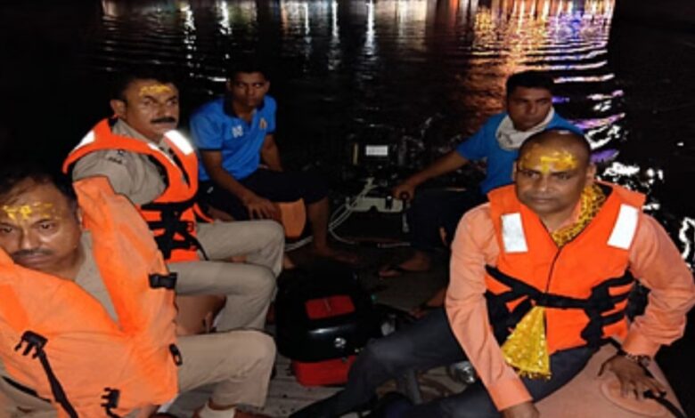 मथुरा। मुड़िया पूर्णिमा मेला मैं आने वाले श्रद्धालुओं की सुरक्षा व्यवस्था में जुटी पुलिस उन्हें जमीन के साथ पानी में भी सुरक्षा प्रदान कर रही है। मुड़िया मेल नोडल प्रभारी एसपी देहात सुरेश चंद्र रावत ने मंगलवार के तड़के 4 बजे मोटर वोट में बैठकर फ्लड  टीम के साथ रिवर पेट्रोलिंग बोट से मानसी गंगा, राधाकुंड और कुसुम सरोवर में पेट्रोलिंग कर सुरक्षा व्यवस्थाओं का निरीक्षण और अधीनस्थों को दिशा निर्देश दिए। नोडल प्रभारी सुरेश सिंह रावत ने बताया कि वरिष्ठ पुलिस अधीक्षक मथुरा श्लोक कुमार के निर्देश पर राधाकुंड, कुसुम सरोवर तथा मानसी गंगा में फ्लड पुलिस बल की टीम निरंतर रिवर पेट्रोलिंग की जा रही है l यद्यपि मेला की अवधि में सुरक्षा की दृष्टिकोण से समस्त सरोवर की बैरिकेडिंग की गई है फिर भी बैरिकेटिंग को पार करके कोई गहरी सरोवर में स्नान हेतु न उतर जाए, इसके लिए प्रशिक्षित डायवर्स की टोटल नौ टीम लगाई गई हैं। सभी सरोवर में गहरे पानी में स्नान हेतु लगातार रोक रही है तथा सभी से अनुरोध किया जा रहा है कि स्नान केवल प्रशासन द्वारा लगाए गए पवित्र मानसी गंगा  के फुब्बारे के जल में ही स्नान करें l  इस दौरान सुरेश चंद्र रावत, क्षेत्राधिकारी गोवर्धन अनिल कुमार सिंह  तथा  थाना थाना प्रभारी निरीक्षक रवि त्यागी निरीक्षण में साथ रहे।