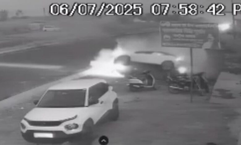 घटना से जुड़ा सीसीटीवी वीडियो भी सामने आया है जिसमें देखा जा रहा है कि हाईवे पर अचानक तेज रफ्तार गाड़ी के सामने आए एक कुत्ते को बचाने के चक्कर में गाड़ी अनियंत्रित होकर चार पलटे खा रही है और उसके बाद सीधी हो रही है