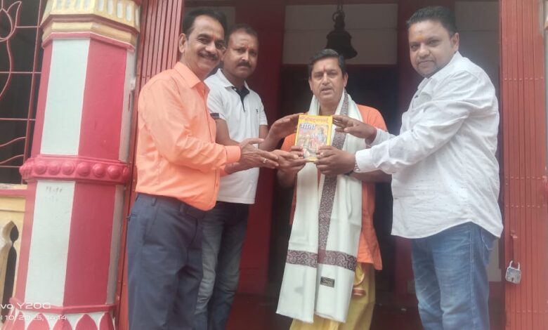 सिंहवाहिनी मंदिर में पंडित तरुण पाण्डेय को अंगवस्त्र प्रदान कर लिया आशीर्वाद