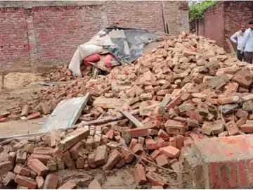 अमरोहा में बारिश से गिरी टीनशेड की दीवार