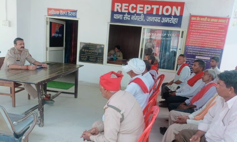 अमरोहा : जनपद में पुलिस अधीक्षक अमरोहा अमित कुमार आनंद के निर्देशन में श्रावण कांवड़ यात्रा के दृष्टिगत थाना प्रभारी विकास कुमार सैदनगली द्वारा क्षेत्र के समस्त ग्राम प्रहरियों/चौकीदारों के साथ गोष्ठी कर बताया है कि अगर गावो में किसी भी प्रकार कि कोई भी घटना होने व किसी भी प्रकार कि समस्या है तो तुरन्त पुलिस प्रशासन को सूचना दे और कावंड यात्रा व्यवस्था को मजबूती के साथ निकलवाए जिससे कि किसी भी कावड़ यात्री को कोई भी समस्या उत्पन्न न है इस संबंध में सम्बन्धित को आवश्यक दिशा-निर्देश दिए गये