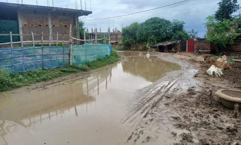 सड़क पर जल जमाव से ग्रामीण एवं राहगीर परेशानी