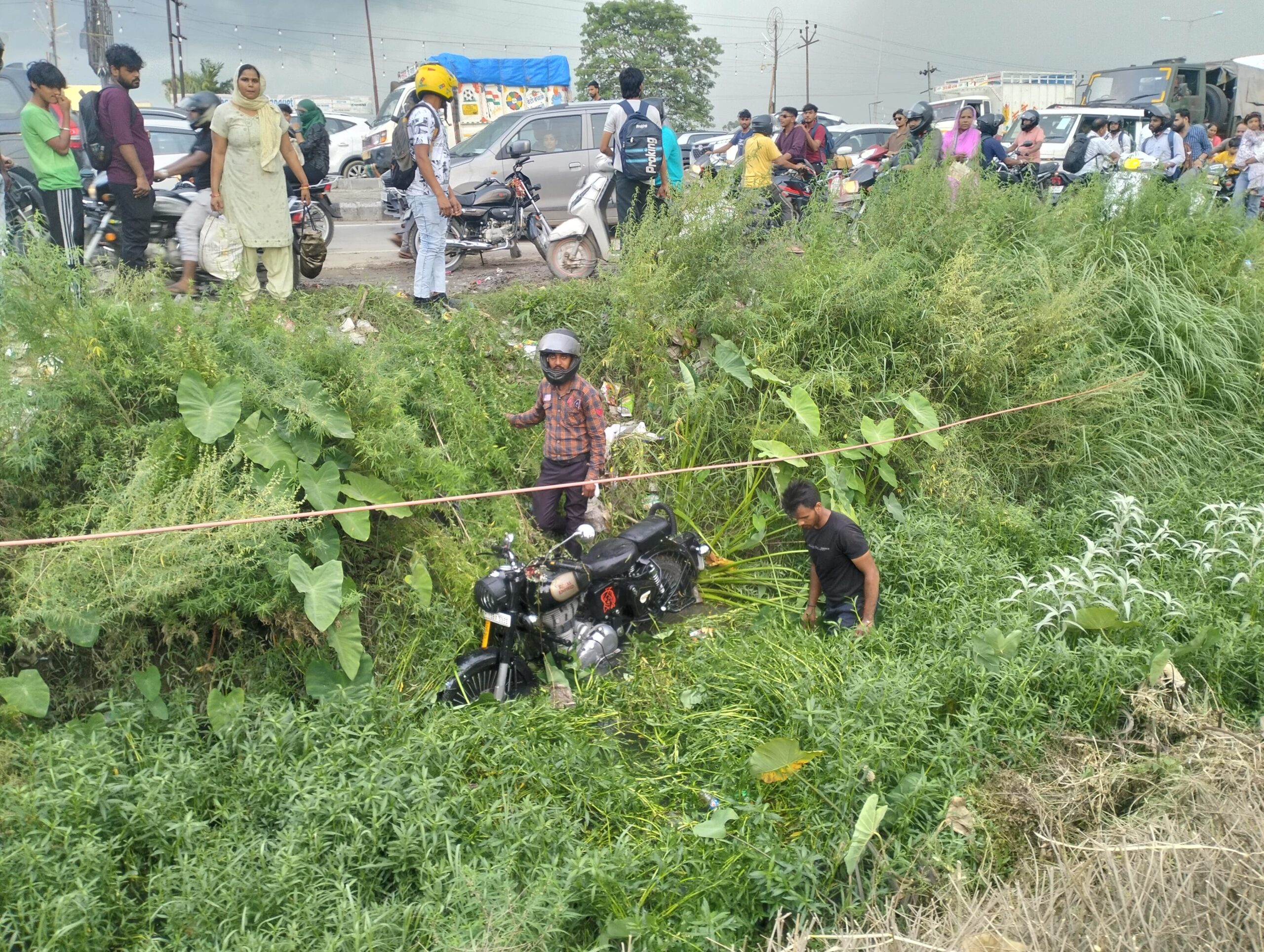 वन-वे ट्रैफिक व्यवस्था ने बढ़ाई मुश्किलें, एमआईईटी कॉलेज के बाहर बाइक सवार गिरा बंबा में