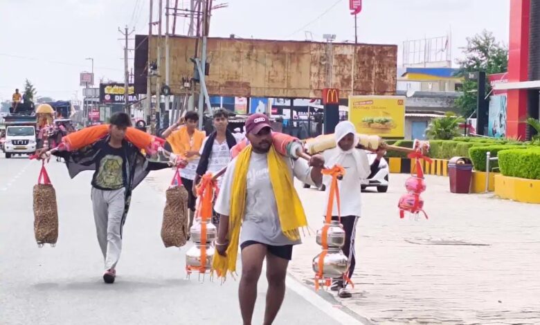 सावन के पहले सोमवार पर शिवालयों में तैयारी पूरी बृजघाट से गंगाजल लेकर लौट रहे हजारों कांवड़िए एक लेन आरक्षित