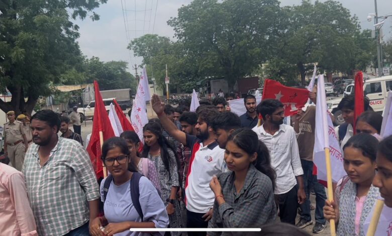 सूचना केंद्र के पुराने भवन व पुस्तकालय को हटाने के विरोध मे एसएफआई ने किया रैली निकालकर प्रदर्शन