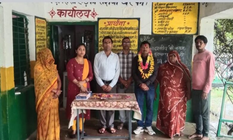 स्थानांतरण होने पर विद्यालय परिवार ने दी विदाई