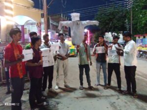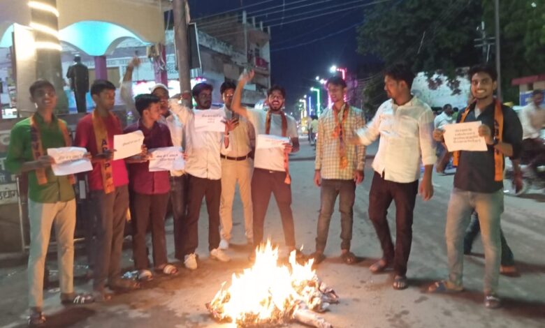 अखिल भारतीय विद्यार्थी परिषद ने उड़ीसा के प्रोफेसर का फूंका पुतला