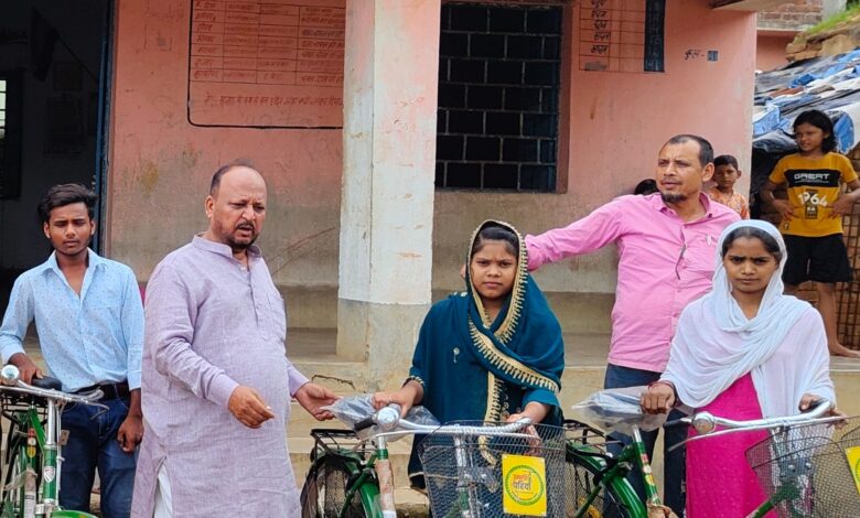 हाजी आलम ने असनबनी मदरसा के बच्चों के बीच बांटी साइकिल