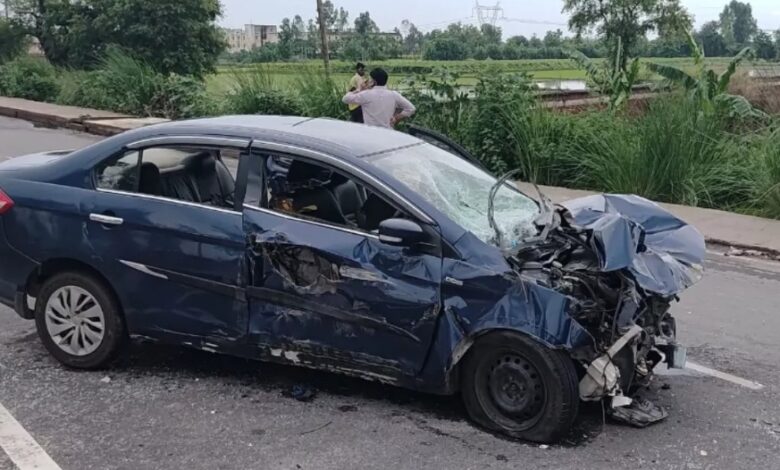 दिल्ली-लखनऊ हाईवे पर कैंटर की टक्कर के बाद कार ने तोड़ी सुरक्षा रेलिंग, चार घायल