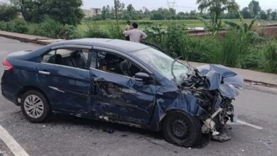 दिल्ली-लखनऊ हाईवे पर कैंटर की टक्कर के बाद कार ने तोड़ी सुरक्षा रेलिंग, चार घायल