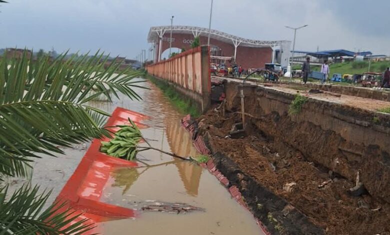 लगातार बारिश से गोड्डा रेलवे स्टेशन की चहारदीवारी हुईं धाराशाई