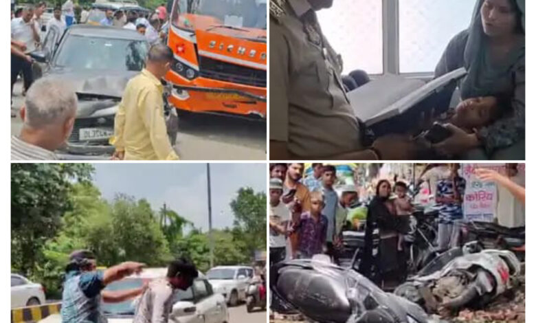 अमरोहा : शुक्रवार दोपहर करीब डेढ़ बजे एक रोडवेज बस ने बड़ा हादसा कर दिया। मुरादाबाद डिपो की यह बस जोया रोड पर कचहरी के पास सड़क किनारे खड़ी 6 बाइक और एक कार से टकरा गई। हादसे में तीन लोग घायल हो गए। घायलों में 10 वर्षीय उनेस, मोहम्मद इस्माइल और एक अन्य व्यक्ति शामिल हैं। सभी घायल मस्जिद में नमाज पढ़ने जा रहे थे। घटना के समय बस में कोई सवारी नहीं थी। स्थनीय लोगों का आरोप है कि बस चालक नशे में था। घटना के बाद मौके पर पहुंचे लोगों ने चालक की पिटाई कर दी। पुलिस ने चालक को हिरासत में ले लिया है। पुलिस ने घायलों को जिला अस्पताल में भर्ती कराया है। दुर्घटनाग्रस्त वाहनों को हटाकर यातायात सुचारू कर दिया गया है। पुलिस मामले की जांच कर रही है।