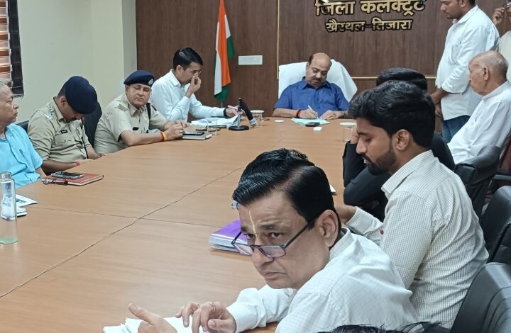 खैरथल-तिजारा । जिला कलक्टर किशोर कुमार की अध्यक्षता में जिला स्तरीय जनसुनवाई गुरूवार को जिला सचिवालय खैरथल-तिजारा के वीसी सभागार में आयोजित की गई। जिला स्तरीय जनसुनवाई में 75 प्रकरण प्राप्त हुए। जिला कलेक्टर ने मौके पर परिवादों को सुना तथा संबंधित अधिकारियों को समयबद्ध निस्तारण के निर्देश दिये। जिला स्तरीय जनसुनवाई में नकल दिलवाने, पत्थरगढी, सीमा ज्ञान, सहायता राशि, रास्ता खुलवाने बाबत, नाले की चौड़ाई एवं रैम्प बनवाने, अतिक्रमण हटाने, बिजली का खंभा हटाने, मुआवजा राशि दिलवाने, गंदे पानी कि निकासी, साफ सफाई, पीएम किसान निधि, पेंशन प्रकरण, रोड की मरम्मत करवाने, जल जीवन मिशन के तहत गांव में कार्य करवाने सहित अन्य परिवाद प्राप्त हुए जिन पर जिला कलेक्टर ने संज्ञान लेते हुए संबंधित उपखण्ड अधिकारी, तहसीलदार, विकास अधिकारी और सम्बंधित विभागों को परिवादों के निस्तारण के निर्देश दिये। उन्होंने सभी परिवादियों को की गई कार्यवाही से अवगत कराते हुये गुणवत्तापूर्ण प्रकरण निस्तारित करने के निर्देश दिये। जिला कलेक्टर किशोर कुमार ने कहा अधिकारी प्रकरणों को लेकर ना बैठे, परिवाद के आवंटित होने पर हाथों-हाथ निस्तारण करें तथा कोशिश करें कि परिवादी को दोबारा जनसुनवाई में ना आना पड़े। जिला स्तरीय जनसुनवाई के दौरान विधायक किशनगढ़ बास दीपचंद खैरिया, अतिरिक्त जिला कलेक्टर शिवपाल जाट, कोषाधिकारी सुरेश कुमार बंसल, सहकारिता विभाग अधिकारी वेद प्रकाश सैनी, अधीक्षण अभियंता धर्मवीर यादव, नगर परिषद आयुक्त मुकेश शर्मा, महिला एवं बाल विकास अधिकारी बीना गुप्ता, संयुक्त निदेशक पशुपालन विभाग हवा सिंह जाट,नोडल अधिकारी आयुर्वेदिक विभाग अजीत बाल्यांण, पीएचईडी सहित सभी जिला स्तरीय अधिकारी एवं कर्मचारी उपस्थित रहे। साथ ही सभी ब्लॉक स्तरीय अधिकारी वीसी के माध्यम से जुड़े रहे।