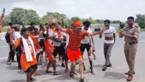 जबकि कांवरियों के साथ नाचते दिखे थाना प्रभारी नीरज और पुलिसकर्मी ….
