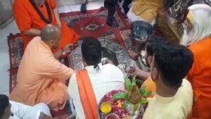 गाजियाबाद। आज सीएम योगी मेरठ में कांवड़ियों पर पुष्प वर्षा करेंगे। इससे पहले सीएम योगी गाजियाबाद पहुंचे। यहां दूधेश्वर नाथ मंदिर में सीएम पूजा-अर्चना करने के बाद सीएम मेरठ के लिए रवाना हुए। गाजियाबाद के दूधेश्वर नाथ मंदिर में रविवार सुबह मुख्यमंत्री योगी आदित्यनाथ पहुंचे। उन्होंने भगवान दूधेश्वर का जलाभिषेक किया। इस मौके पर मंदिर के महंत नारायण गिरी ने मंत्रोच्चार के साथ पूजा कराई।