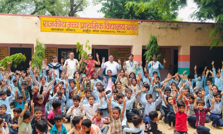 शिक्षा अधिकारी ने उदयपुरा स्कूल का किया निरीक्षण, नव प्रवेशित बच्चों का किया सम्मान