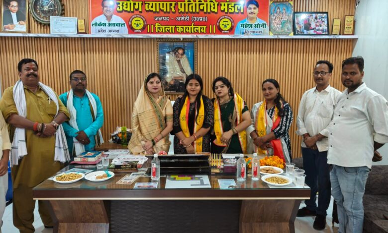 अमेठी । उद्योग व्यापार प्रतिनिधि मंडल अमेठी के जिला कार्यालय पर प्रदेश अध्यक्ष लोकेश अग्रवाल के निर्देश पर जिला अध्यक्ष महेश सोनी के नेतृत्व में संरक्षक महिला प्रकोष्ठ पूर्व नगर पंचायत प्रत्याशी लक्ष्मी सोनी के अध्यक्षता में महिला प्रकोष्ठ के जिला अध्यक्ष पद के लिए रूचि पाण्डेय जिलाध्यक्ष की जिम्मेदारी प्रदान की गई। वहीं जिला महामंत्री पद पर दीपिका साहू को मनोनीत किया गया। और उर्मिला गुप्ता को जिला संरक्षक बनाया गया। साथ ही नगर अमेठी से नगर उपाध्यक्ष हिमांशु मिश्र को मनोनयन पत्र प्रदान किया गया। नव नियुक्त जिलाध्यक्ष रूचि पाण्डेय ने आये हुए सभी व्यापारियों और पदाधिकारियों का आभार व्यक्त करते हुए कहा कि अमेठी जनपद में महिला व्यवसायियों के हितों की रक्षा के लिए हरदम तत्पर रहूंगी और संगठन की मजबूती के लिए जो भी कार्य होगा करती रहूंगी। इस मौके पर जिला वरिष्ठ महामंत्री सुशील जायसवाल, टीकरमाफी बाजार अध्यक्ष सतीश श्रीवास्तव, महामंत्री अभयराज मौर्या, युवा जिला महामंत्री पवन वैश्य, कमल अग्रहरि, विकास पासवान, प्रद्युम्न मोदनवाल, हिमांशु कसौधन, विष्णु सोनी, दुर्गेश कुमार, गीता सोनी रीता सोनी आदि आदि लोग मौजूद रहे।