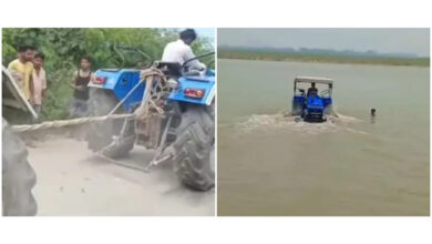 अमरोहा में दो ट्रैक्टर रस्सी से बांधकर खींचे