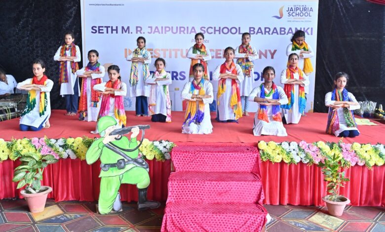 बराबंकी। लखनऊ अयोध्या राष्ट्रीय राजमार्ग पर स्थित सेठ एम आर जयपुरिया स्कूल मे शतवार कारगिल विजय दिवस मनाया गया इस दौरान स्कूल के बच्चो द्वारा संस्कृतिक प्रोग्राम प्रस्तुत किये गये वही हाई स्कूल एव इंटरमीडिएट मे सर्वाधिक अंक प्राप्त करने वाले छात्र छात्राओं का सम्मानित किया गया। कार्यक्रम का शुभारंभ कर्नल नेहा भटनागर एव सेनानिवर्त मेजर ए के सिंह ने दीप प्रजवल्लित कर किया तथा वर्ष 2025 की बोर्ड परीक्षा मे सर्वाधिक अंक प्राप्त करने वाले इंटरमीडिएट के छात्र सूर्यांश, हाई स्कूल की छात्रा अश्रिया वर्मा, धैर्य गुप्ता को सम्मानित कर ईश्वर से उज्ज्वल भविष्य की कामना की इससे पूर्व विद्यालय की प्रधानाचार्य मिनुषी नेगी ने अतिथियों को पुष्पगुच्छ भेंट कर स्वागत किया और कर्नल नेहा भटनागर व मेजर ए के सिंह के जीवन पर चर्चा की। कर्नल नेहा भटनागर ने आर्मी जीवन के प्रति समर्पण एव देश के अटटू त्याग, बलिदान के लिए प्रेरित किया वही सेवानिवर्त मेजर ए के सिंह ने अपने सेवा काल के कुछ विशिष्ट अविस्मरणीय पलो को साझा किया। कार्यक्रम मे लघु संवाद नाटिका मंचन द्वारा कारगिल शहीदों को नमन किया गया जिसमे अभिनव गुप्ता को हेड व्वाय, मनीषी जयसवाल को हेड गर्ल, अत्यांश उपाध्यय को वाइस हेड व्वाय एव भव्या जयसवाल को वाइस हेड गर्ल की उपाधि से सम्मानित किया गया।