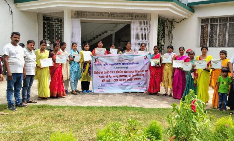 साहिबगंज राष्ट्रीय प्राकृतिक खेती मिशन (National Mission on Natural Farming) के अंतर्गत साहिबगंज जिले के चार प्रखण्डों- बरहेट, राजमहल, तालझारी एवं उधवा के करीब 9 क्लस्टरों से चयनित 18 सामुदायिक संसाधन व्यक्तियों (CRP) का पाँच दिवसीय प्रशिक्षण कार्यक्रम आज कृषि विज्ञान केंद्र, साहिबगंज के सभागार में संपन्न हुआ,इस प्रशिक्षण कार्यक्रम का समापन जिला उद्यान पदाधिकारी अमितेश रंजन, कृषि विज्ञान केंद्र से डॉ. वीरेंद्र कुमार मेहता एवं डॉ. माया कुमारी द्वारा संयुक्त रूप से किया गया।समापन अवसर पर विशेषज्ञों ने सीआरपी को संबोधित करते हुए कहा कि वर्तमान में रासायनिक खेती के कारण अनेक प्रकार की बीमारियाँ तेजी से फैल रही हैं। ऐसे में प्राकृतिक खेती अपनाकर न केवल किसानों का स्वास्थ्य बेहतर होगा, बल्कि भूमि की उर्वरता भी लंबे समय तक बनी रहेगी। उन्होंने जोर देकर कहा कि प्रत्येक किसान को प्राकृतिक खेती की ओर अग्रसर होना चाहिए। प्रशिक्षण के दौरान सीआरपी को जैविक खाद के निर्माण की विधियों, जैसे- घन जीवामृत, बीजामृत, नीमस्त्र, अग्नि अस्त्र एवं ब्रह्मास्त्र की जानकारी दी गई। यह भी बताया गया कि ये सभी जैविक उत्पाद किसान अपने घरों में स्थानीय संसाधनों से आसानी से तैयार कर सकते हैं।इस अवसर पर उद्यान विभाग से मुकेश कुमार एवं प्रेम पासवान भी उपस्थित रहे। कार्यक्रम का उद्देश्य सीआरपी को प्रशिक्षित कर गांव-गांव में प्राकृतिक खेती के प्रति जागरूकता फैलाना और किसानों को आत्मनिर्भर बनाना है।