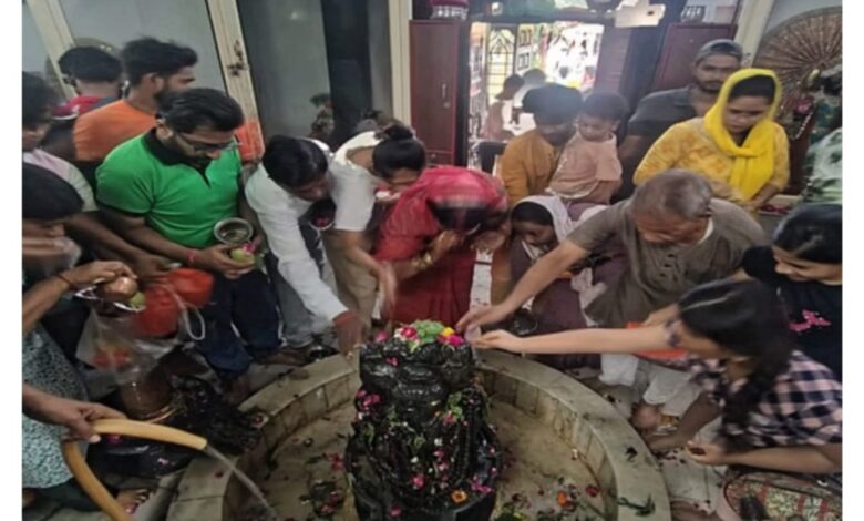 बरेली। सावन के तीसरे सोमवार को बरेली के सात नाथ मंदिरों में शिवभक्तों की भीड़ उमड़ी। पहली बार नाथ नगरी में शिवभक्तों पर हेलीकॉप्टर से फूल बरसाए गए। कमिश्नर, डीआईजी, डीएम और एसएसपी ने हेलीकॉप्टर से भक्तों पर पुष्प वर्षा की। आसमान से बरसते फूलों के बीच शिवभक्तों ने हाथ उठाकर हर-हर महादेव के जयकारे लगाए। इस दौरान मंदिर परिसर जयकारों से गुंजायमान हो गए। शहरवासी भी खुश नजर आए। कमिश्नर सौम्या अग्रवाल, डीआईजी अजय कुमार साहनी, डीएम अविनाश सिंह व एसएसपी अनुराग आर्य ने बाबा वनखंडी नाथ, धोपेश्वरनाथ व तपेश्नरनाथ मंदिरों में शिवभक्तों पर पुष्पवर्षा की। इससे पूर्व सभी अफसर पुलिस लाइन में एकत्र हुए। यहां हेलीकॉप्टर से उड़ान भरी और नाथ नगरी में फूल बरसाए। नाथ मंदिरों में आधी रात के बाद से जलाभिषेक शुरू हो गया। सुबह होते-होते भक्तों की कतार लंबी होती गई। हरिद्वार, कछला घाट से गंगाजल लेकर आए कांवड़ियों ने भगवान शिव का अभिषेक किया। इस दौरान मंदिर हर-हर महादेव के जयकारों से गूंज उठे। किला स्थित बाबा अलखनाथ मंदिर में मंदिर के महंत कालूगिरी महाराज ने बताया कि मंदिर में भक्तों की भीड़ को देखते हुए आने जाने के लिए अलग रास्ते बनाए गए, जिससे भक्तों को पेरशानी न हो। मंदिर में रात 12 बजे से ही जलाभिषेक शुरू हो गया। बाबा त्रिवटीनाथ मंदिर में सोमवार सुबह चार बजे महाआरती के बाद जलाभिषेक की शुरुआत हुई। मंदिर के मीडिया प्रभारी संजीव औतार अग्रवाल ने बताया कि मंदिर में आने वाले भक्तों के लिए पूरी व्यवस्था की गई है। यहां कांवड़ियों के लिए अलग लाइन बनाई गई।