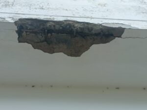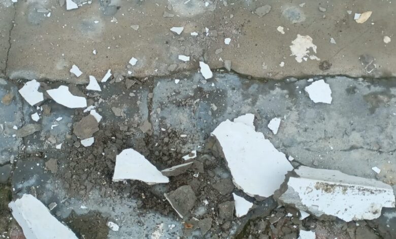 मंगलवार को आवासीय भवन के फ्लैट नंबर तीन की छत से प्लास्टर के टुकड़े अचानक छत से नीचे गिरने लगे। डा योगधर पांडेय बाल बाल बचे। कंक्रीट का एक टुकड़ा डा शंकर लाल के पैर के पास गिरा, कुदरत की कृपा रही कि दोनों को चोट नहीं आई।