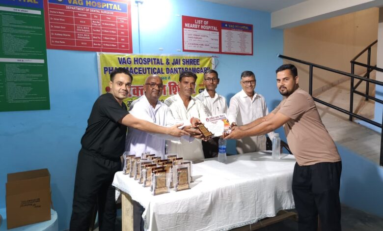 सीकर दांतारामगढ़। वाग हॉस्पिटल रामगढ़ में जय श्री फार्मास्युटिकल दांतारामगढ़ के सौजन्य से स्वैच्छिक रक्तदान शिविर का आयोजन किया गया, शिविर में 65 रक्तदाताओं ने रक्तदान किया। वाग हॉस्पिटल के डॉ इमरान खान ने बताया कि मंगलवार को जय श्री फार्मास्युटिकल दांतारामगढ़ के सौजन्य से रक्तदान शिविर लगाया गया, जिसमें रक्तदाताओं ने स्वैच्छिक रक्तदान किया तथा आपके द्वारा किया गया रक्तदान किसी की जान बचा सकते हैं , रक्तदान से बड़ा कोई दान नहीं है। संयोजक आकाश कुमावत ने बताया कि रक्तदान शिविर में संग्रहीत किया गया ब्लड, शांति ब्लड सेंटर सिरसी रोड़ बिंदायका जयपुर की टीम द्वारा संग्रह किया गया। वहीं रक्तदाताओं को मोमेंटो प्रशस्ति पत्र देकर सम्मानित किया गया। इस दौरान सरपंच प्रतिनिधि रतन लाल यादव, श्री कल्याण विमेन वेलफेयर संस्था के फाउंडर बाबूलाल कुमावत, परमानंद कुमावत, डॉक्टर इमरान खान, डॉ विकास रंका, नटवरलाल सोनी, व्यापार मंडल अध्यक्ष विनोद खेतान, आकाश कुमावत, ओम प्रकाश कुमावत, शमशेर खान, समीर खान, सुरेश मीणा रमेश कुमावत, रक्तदाताओं सहित अनेक गणमान्य लोग उपस्थित रहे।