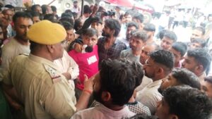 गुढा थानाधिकारी राम मनोहर की समझाइश और चोरों को चार दिन में गिरफ्तार करने के आश्वासन के बाद खोला जाम
