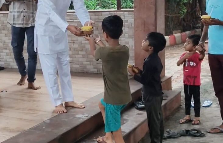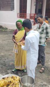 घनेंद्र सिंह ने किया कुष्ठ रोगियों को फल वितरण